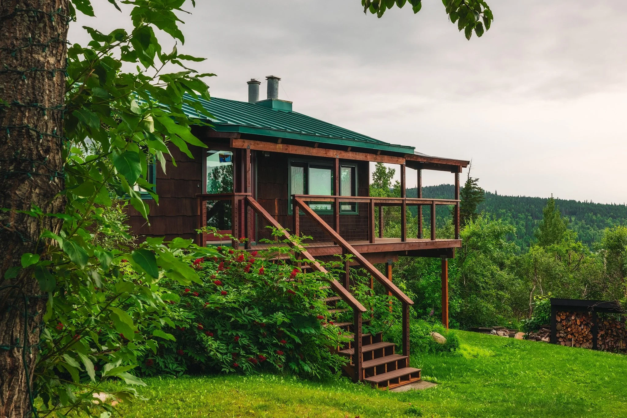 DECK DETAILSDeckorators Khaya deck surfaceStained cedar railing with stainless steel cableCustom privacy wall wrapped in Deckorators Khaya